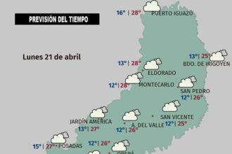 El pronóstico del tiempo en Misiones este miércoles 15 de abril indica que la temperatura máxima será de 25°C y la mínima…