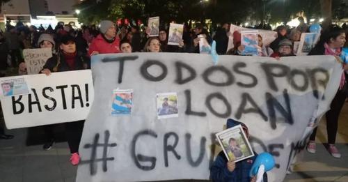 Familiares y vecinos de Goya, Corrientes, se movilizaron esta tarde en la Plaza Mitre para exigir la aparición con vida de Loan Danilo Peña, el niño desaparecido hace dos meses en la localidad de 9 de Julio.