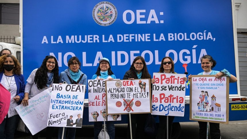 La marcha de este jueves no es la primera muestra de rechazo contra el organismo, ya que el lunes, frente al edificio del Congreso de Perú, se estacionó un camión con el cartel «OEA: a la mujer la define la biología, no la ideología».