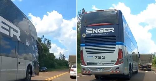 En las últimas horas, lectores de Misiones Online compartieron imágenes de un incidente tenso ocurrido en la ruta nacional 14, cerca del acceso a la localidad de 25 de Mayo, protagonizado por un colectivo de la empresa Expreso Singer. Desde la firma señalaron que el conductor ya fue apartado.