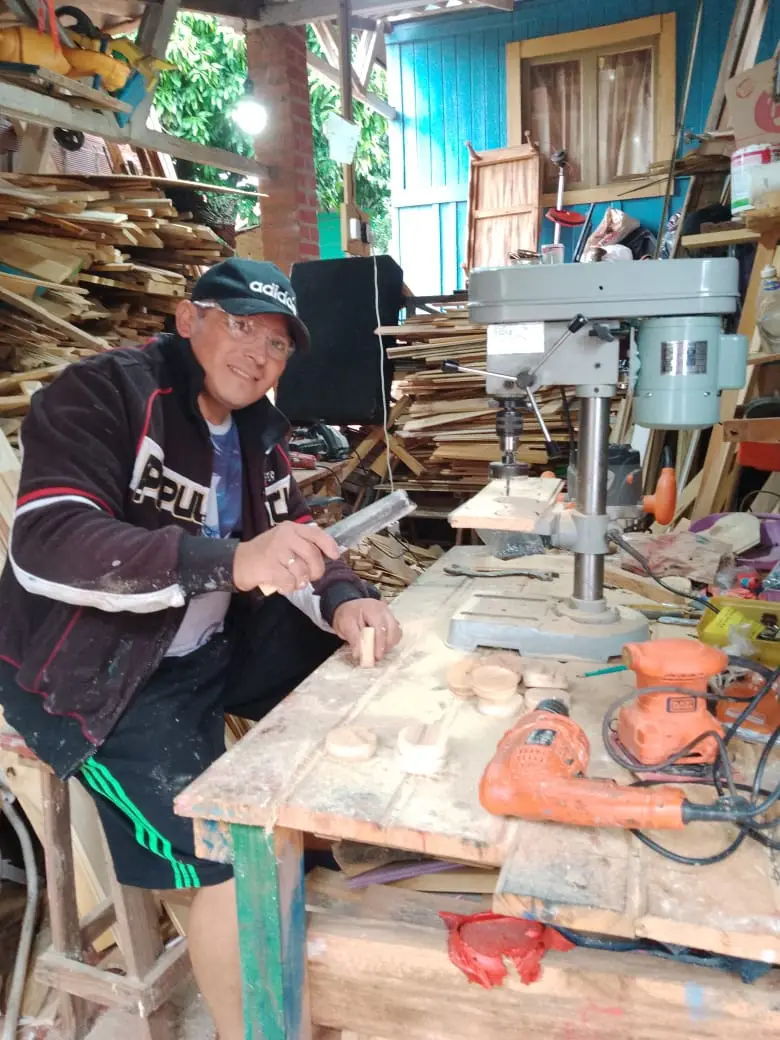 Horacio Orlando López, el policía que desde hace años realiza trabajos comunitarios y construye juguetes didácticos con madera para los niños en Cerro Azul