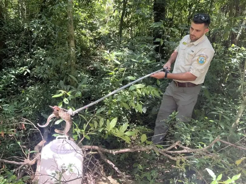 Cuidado ambiental: trasladaron una víbora cascabel a una zona segura en Cataratas