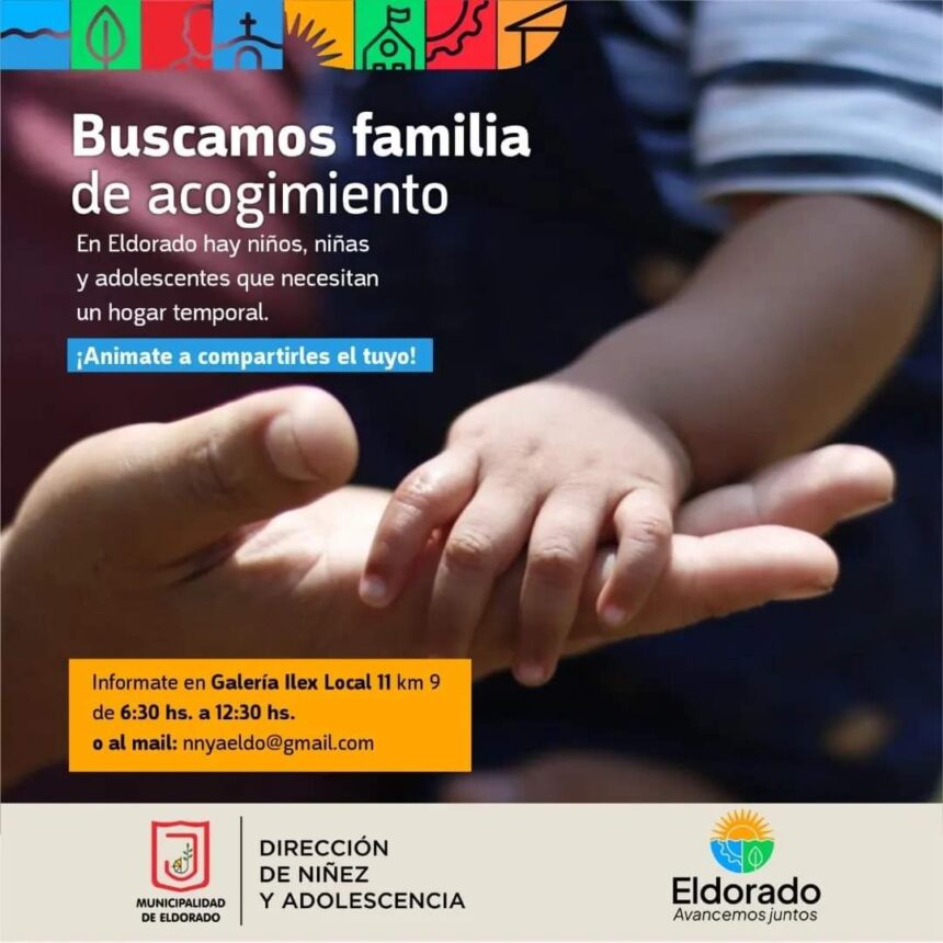 La Dirección de Niñez y Adolescencia de la Municipalidad de Eldorado informa que se están buscando familias que estén en condiciones de acompañar de modo temporario y transitorio a los niños, niñas y adolescentes de 0 a 18 años que por diferentes motivos no conviven con su familia de origen.
