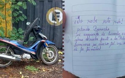 Robó una moto “borracho”, se arrepintió y la devolvió con una carta