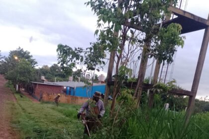 Este jueves, el equipo de parquización inició las tareas de desmalezado en el espacio verde ubicado sobre las calle Pionero Jorge Kirchner.