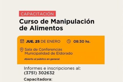 El jueves 25 se dictará un nuevo curso de manipulación de alimentos