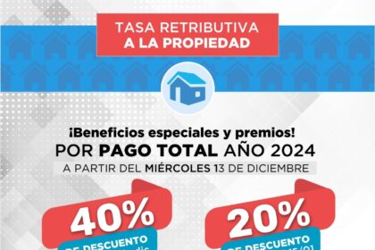 Últimos días para acceder al 40% de descuento en el pago total de la Tasa Retributiva a la Propiedad 2024