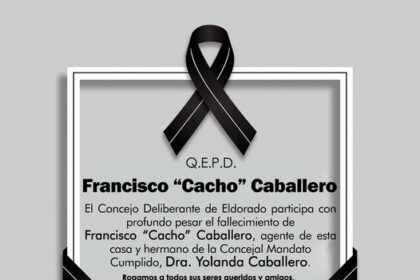 El Concejo Deliberante Eldorado Misiones participa con profundo pesar el fallecimiento del Sr. Francisco «Cacho» Caballero, Agente de la Casa y hermano de la concejal Mandato Cumplido, Dra. Yolanda Caballero.