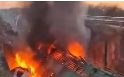 El rodado transportaba autos 0 km y se incendió tras el impacto…