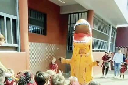 Retiró a su nieto de la escuela disfrazada de dinosaurio