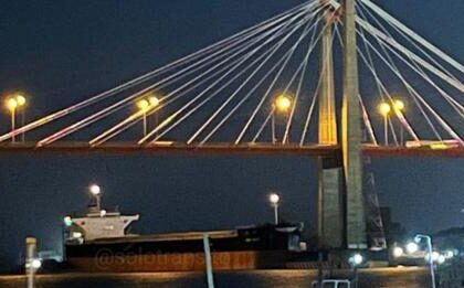 Un enorme barco chocó contra un pilar del puente Zárate-Brazo Largo