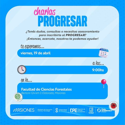Este viernes 19 de abril, a los 9 hs, en la Facultad de Ciencias Forestales, se llevará adelante una charla informativa sobre el programa Progresar.