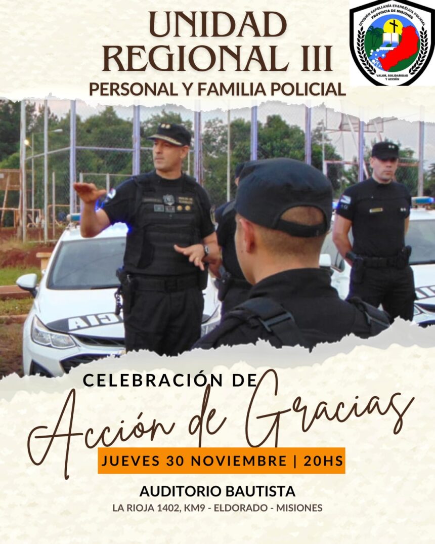 Con motivo de celebrarse el Día de Acción de Gracias del personal y familia policial dependiente de la Unidad Regional III Eldorado