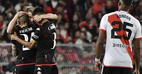El equipo de Diego Martínez consiguió golpear a fondo a los cuatro minutos del complemento: Héctor Fértoli envió un centro desde la derecha al que fueron Franco Armani y Walter Mazzantti, pero éste desairó al arquero con un taco que le pasó entre las piernas. La sorpresa provocó una mayor efusividad local, con un intento desviado de Salomón Rondón y otro de Lanzini que frustró Lucas Cháves.