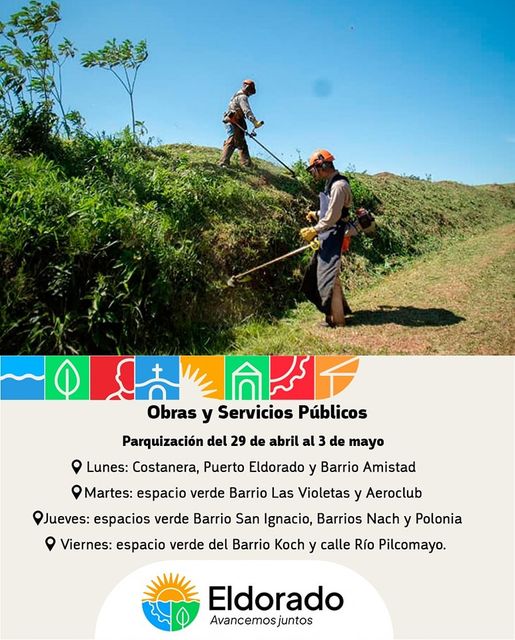 Informacion generalLocales Cronograma de trabajo del Equipo de Parquización de la Secretaría de Obras y Servicios Públicos, del 29 de abril al 3 de mayo. Última actualización: 2024/04/29 at 7:05 PM Dia uno Publicada 29 abril, 2024 compartir compartir TAGGED: General Dia uno 29 abril, 2024 Share this Article Facebook Twitter Email Copiar link Impresión Entradas recientes Conmoción en un torneo de fútbol: un joven de 25 años se descompensó en la cancha y murió Bomba: Franco Colapinto podría correr con Alpine en Argentina durante el parate de la F1 en abril Con cinco partidos y tres grandes en acción, hoy continúa la fecha 11 del Torneo Apertura: horario, TV y formaciones Un dato inédito: la Selección Argentina llegará al Mundial 2026 sin enfrentar a equipos europeos Boca confirmó avances en el proyecto para ampliar La Bombonera