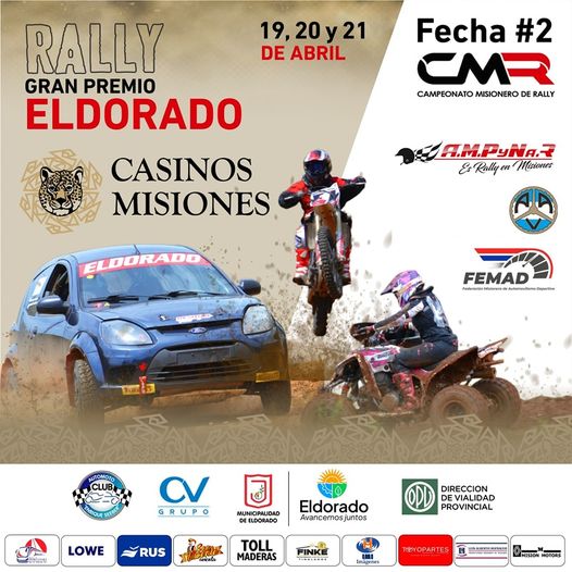 ✅️El Gran Premio Eldorado – Casinos Misiones se realiza de manera conjunta entre la Asociación Misionera de Pilotos y Navegantes de Rally (AMPyNaR), y el Automoto Club Enrique Seeber, con el acompañamiento de la Municipalidad de Eldorado.