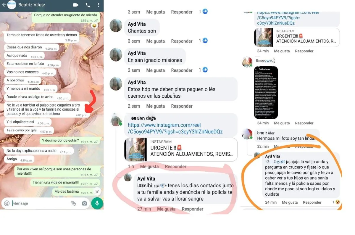 Las graves amenazas están a la vista de todos en las redes sociales. «Mi madre comentó un posteo donde nos escracharon de que no tuvieron agua durante su estadía y ellos escribieron textual ‘tus hijos son boleta y anda y denuncia va a correr sangre’. Yo fui a la comisaría Tercera a denunciar porque tengo miedo por mis hijos y mi familia», relató la mujer con visible angustia.