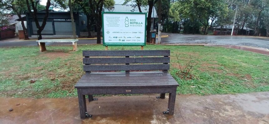 Este banco es producto del trabajo de campañas de concientización y recolección de botellas de amor (ecobotellas) , a través del cual se juntaron más de 1500 kilos de residuos plásticos que, con el acompañamiento de la Subsecretaría de Economía Circular, fueron reciclados y convertidos en este primer banco para la plaza saludable de Eldorado.