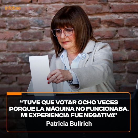La crítica de Bullrich tenía que ver con un episodio incómodo que vivió: tuvo notorios problemas para emitir su voto con la Boleta Única Electrónica. Durante 10 minutos, su imagen estuvo en todos los medios mientras trataba de sufragar y lidiaba con una falla de la máquina.