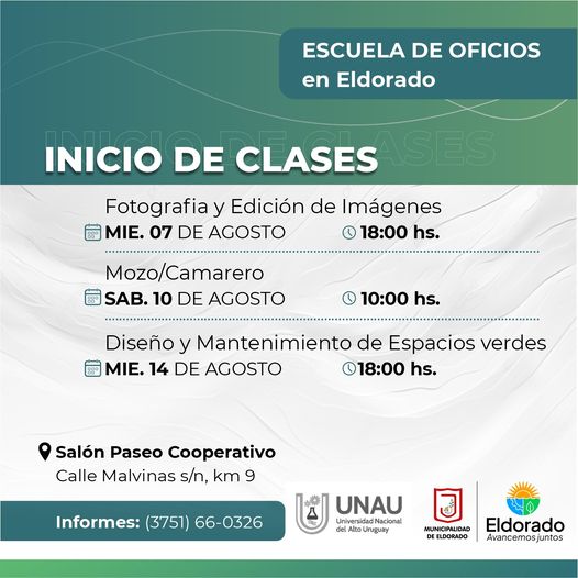 El Departamento Polo Académico informa el inicio de los cursos de la Escuela de Oficios de la Universidad Nacional del Alto Uruguay.