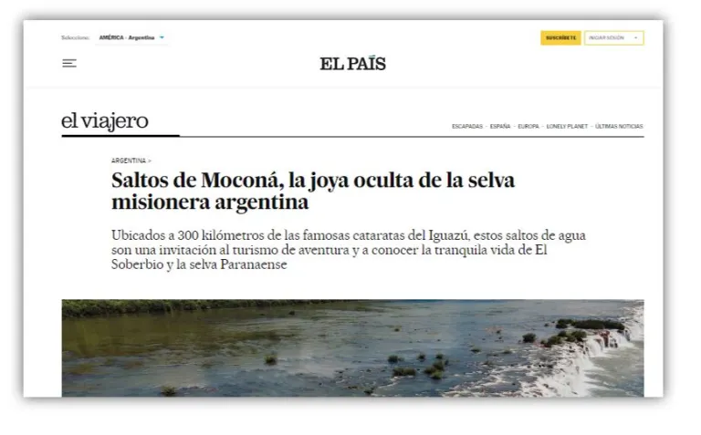 La nota se publicó este miércoles en el reconocido medio de Europa. Allí elogia tanto a El Soberbio como a los Saltos emplazados en dicha localidad. Se destaca la oferta turística, la biodiversidad y la idiosincracia del lugar.