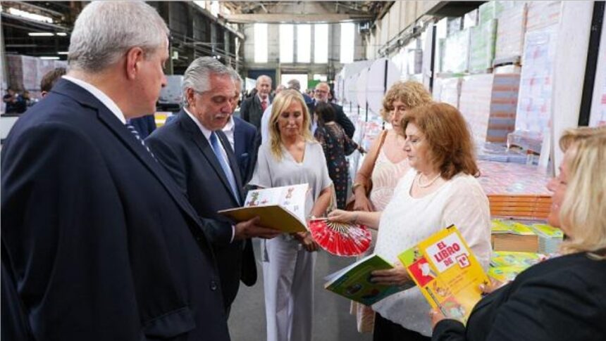 Acompañado por el ministro de Educación, Jaime Perczyk, y otros funcionarios, el jefe de Estado visitó la firma Envaplast, en el barrio porteño de Pompeya, donde presenció el proceso de armado de las colecciones correspondientes al programa ‘Libros para Aprender’ que se enviarán a las 24 jurisdicciones, se informó oficialmente.