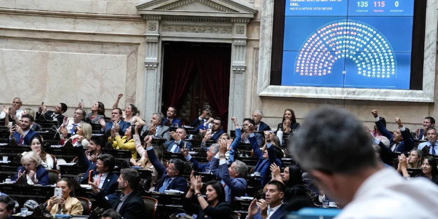 El tablero marcó 135 votos afirmativos contra 115 negativos, sin abstenciones. Para alcanzar ese número, los libertarios contaron con el respaldo de sus aliados del PRO, la UCR y el MID, pero el aporte fundamental provino de bloques provinciales. L