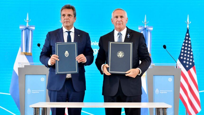 El ministro de Economía, Sergio Massa, y el embajador de Estados Unidos en la Argentina, Marc Stanley, firmaron este lunes un Acuerdo en Materia Tributaria (TIEA) que prevé intercambiar información financiera de cuentas individuales y beneficiarios de sociedades de ambos países.