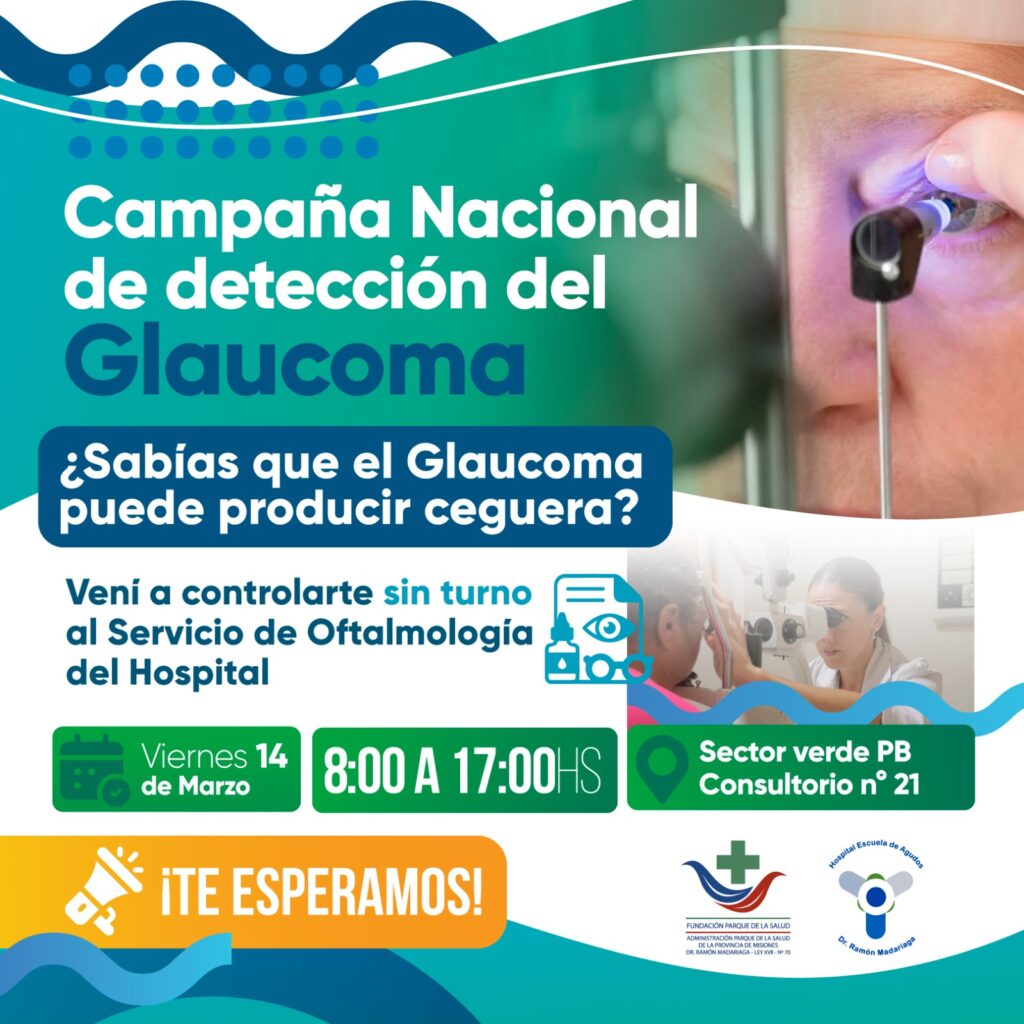 El 14 de marzo, de 8 a 17 horas, Misiones realizará una iniciativa para la detección del glaucoma. El examen incluye medición de presión ocular y revisión del nervio óptico. Abierto a personas desde los 15 años. Se realizará en el Hospital Madariaga. Es sin costo para el paciente y sin turno previo.