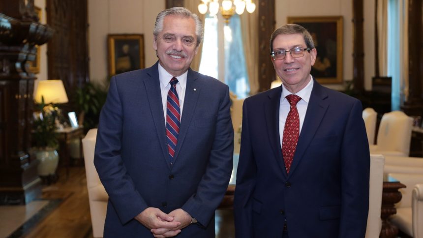 El presidente Alberto Fernández recibió este viernes al ministro de Relaciones Exteriores de Cuba, Bruno Rodríguez Parrilla, con quien dialogó acerca de las relaciones bilaterales entre ambos países.