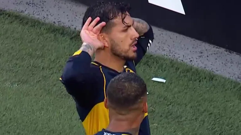 Tras anotarle a River, Paredes lanzó una seguidilla de festejos provocadores mirando hacia la tribuna local. Primero, agarró el escudo de Boca en su camiseta y lo besó. Luego, se puso la mano en una oreja y movió sus manos para que la hinchada rival, que lo había silbado antes de patear, cante más fuerte.