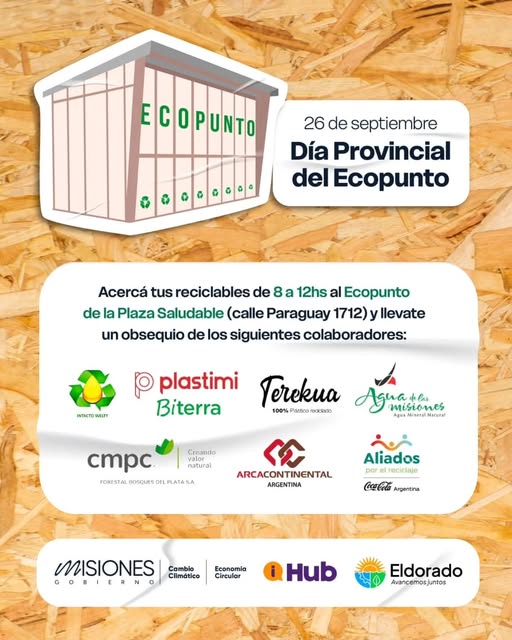 Este viernes 26 de septiembre se celebrará por primera vez el Día Provincial del Ecopunto, y la ciudad de Eldorado formará parte de las actividades programadas en toda la provincia.