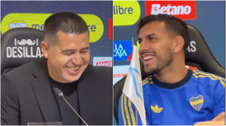 Riquelme se presentó con un sobrio traje y remera negra, diferente a su vestimenta habitual. Por eso, Paredes no dudó en hacérselo notar.