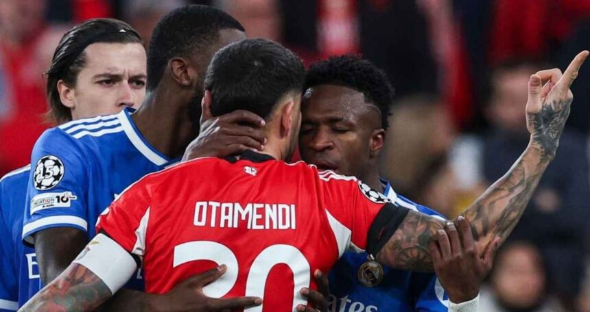 El cruce entre Benfica y Real Madrid por la ida de los 16avos de final de la Champions dejó mucho más que fútbol. En un partido atravesado por la tensión, las discusiones y la activación del protocolo antirracismo, Nicolás Otamendi protagonizó uno de los gestos más comentados de la noche al mostrarle a Vinícius Junior su tatuaje de la Copa del Mundo en pleno intercambio verbal.