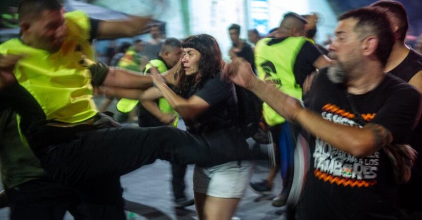 Según los efectivos, no pudieron aportar datos del agresor, pero en el video se ve claramente que los uniformados permanecen quietos en el cordón que formaron y ninguno fue a aprehenderlo.