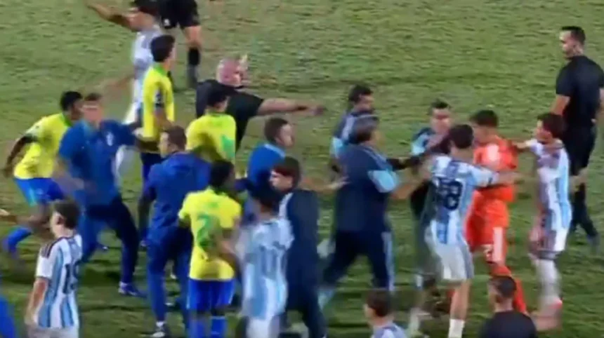 El cierre del partido fue caótico. Los jugadores argentinos reaccionaron con enojo ante las cargadas y los festejos de sus rivales brasileños, a quienes fueron a increpar. La situación derivó en empujones y gritos en el campo de juego, lo que desbordó el clima del encuentro. Los cuerpos técnicos de ambas selecciones intervinieron para calmar a sus dirigidos y evitar que la tensión escalara.