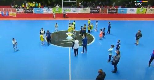Ocurrió a falta de 4m19 para el final del primer tiempo cuando los visitantes decidieron dejar la cancha. Hubo bronca por los fallos arbitrales y un escupitajo desencadenó la bronca.
