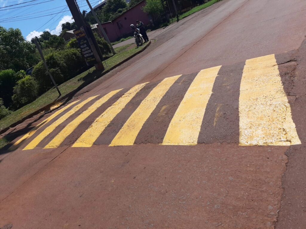 Este sábado, el equipo de Obras Públicas y de la Dirección de Tránsito, continuaron los trabajos de pintado de los lomos de burro y sendas peatonales.