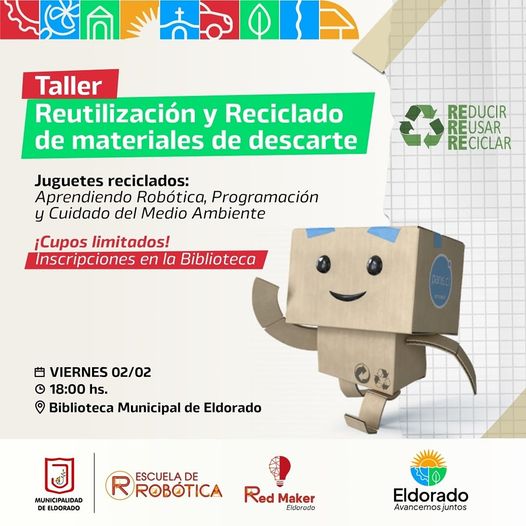Este viernes 2 de febrero, a las 18 horas, se llevará adelante un taller de Reutilización de materiales de descarte y reciclado de juguetes!