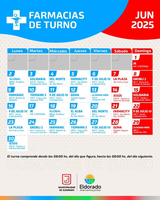 Localessalud Farmacias de turno – junio 2025. Última actualización: 2025/06/02 at 7:45 PM Dia uno Publicada 2 junio, 2025 compartir compartir TAGGED: Últimas noticias Dia uno 2 junio, 2025 Share this Article Facebook Twitter Email Copiar link Impresión Entradas recientes Un homicida y un secuestrador, los dos internos que no regresaron de su salida transitoria en Eldorado Falta de plásticos paraliza la entrega de licencias de conducir: el problema que complica a los misioneros que cruzan la frontera Trump descolocó al Gobierno: ratificó que condiciona su apoyo a las elecciones legislativas y frustró el intento oficial de aclaración Rescate de menores en Garupá | “El grooming suele ser la puerta de entrada a otros delitos más graves”, sostuvo el procurador general Carlos Giménez Los cantos ancestrales resonarán en las Cataratas por el Día de la Diversidad Cultural
