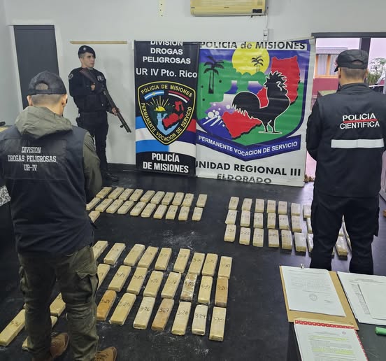 En un operativo encubierto realizado durante la madrugada de este miércoles, efectivos de las Divisiones de Drogas Peligrosas de las Unidades Regionales de Eldorado y Puerto Rico de la Policía de Misiones, incautaron 84 ladrillos prensados de marihuana listos para la distribución en el barrio San José, en la ciudad de Eldorado.