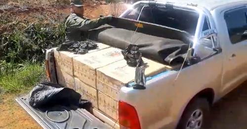 Se constató que en el interior de la camioneta eran transportadas una enorme cantidad de cigarrillos de origen extranjero, cuyo conteo arrojó un total de 19.000 paquetes, distribuidos en 38 cajas de cartón y cuyo avalúo asciende a $ 8.896.968,50. Asimismo, dentro del primer vehículo que había sido detenido se hallaron 3 celulares, 200.000 pesos y 700 dólares.