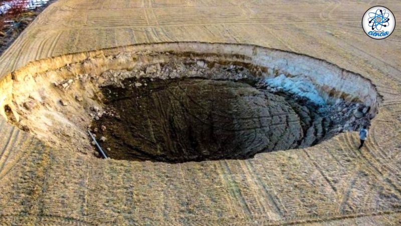 En este caso, según informó a través de redes sociales, este enorme socavón apareció de manera repentina entre dos fallas activas en un campo despejado en la localidad de Karapinar, en la provincia turca de Konya.