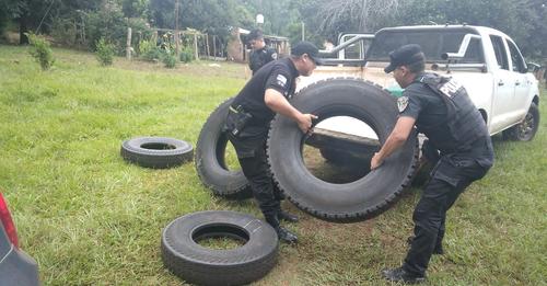 Policías de la Comisaría Quinta lograron establecer que lo sustraído se hallaría en una chacra del Paraje El Bonito, Santo Pipó, donde se entrevistaron con Jorge M. (64 años) que manifestó tener 4 neumáticos -de características coincidentes a los robados-, que le fueron entregados por Odulio G. y Ángela D. -dos en un intercambio y 2 para resguardo-, haciendo entrega voluntaria de los mismos al tomar conocimiento de su procedencia.