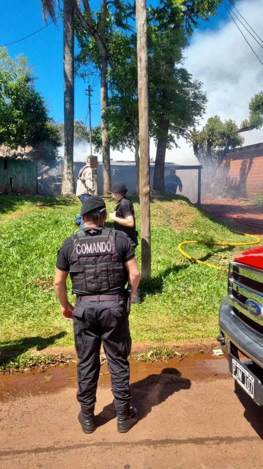 Al arribar al domicilio, los efectivos constataron que el fuego se encontraba declarado y que la vivienda, de madera y mampostería con techo de chapas de zinc, estaba siendo consumida en su totalidad. De inmediato se iniciaron las tareas de extinción, logrando controlar las llamas y evitar su propagación.