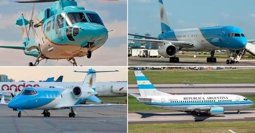 En total, son dos aviones, el Boeing 757 (ARG 01) y un Boeing 737 (ARG 02) -también existe un Leart 60 (ARG 03) que ya estaba en manos de la Fuerza Aérea- y tres helicópteros, un Black Hawk S70 (ARG 10), un Sikorsky S 76 (ARG 11) y un Sikorsky S 76 (ARG 12).