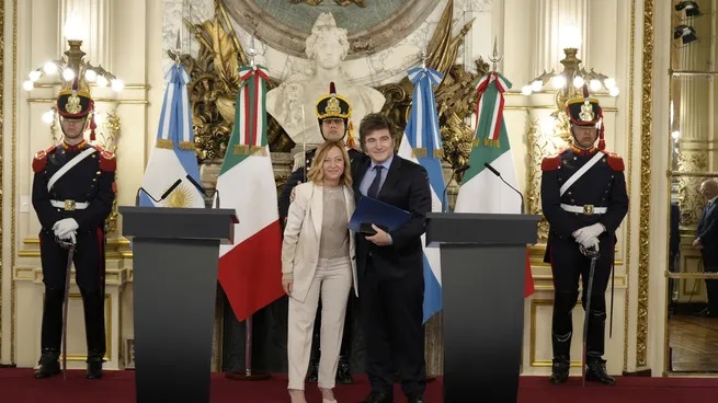 A su turno, Meloni sostuvo que el vínculo que une a ambas naciones “tiene profundas raíces”, desde antes de que Italia y Argentina sean estados libres y soberanos. “El amor por la libertad es un sentimiento que nos une desde siempre”, indicó.