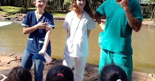 La charla estuvo a cargo de la Lic. en Nutrición Yvette Dubois y los enfermeros residentes de España Diego Basadre Castro y Esther Aguar Lafuente, quienes compartieron sus conocimientos y experiencias con los pequeños.