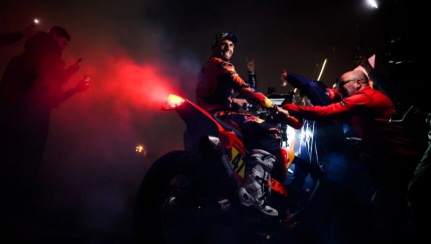 El salteño remontó en la jornada final una desventaja de 12 segundos sobre su compañero de escudería, el australiano Toby Price, al que superó por 43′ en la clasificación general. Benavides, de 34 años, terminó la competencia con un tiempo acumulado de 44 horas, 27 minutos y 20 segundos tras recorrer más de 8.000 kilómetros sobre el desierto árabe desde que se encendieron los motores el pasado 31 de diciembre.