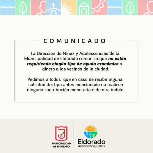 Pedimos a todos que en caso de recibir alguna solicitud del tipo antes mencionado no realicen ninguna contribución monetaria o de otra índole.